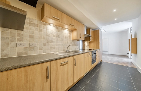 The apartment features a spacious and versatile open-plan kitchen, reception, and dining room, which acts as the focal point of the home. This expansive living area is perfect for modern city life, offering ample room for both relaxing and entertaining. Large windows typical of mill conversions allow for a bright atmosphere, highlighting the potential for a stunning contemporary finish. Two sets of French doors open onto the courtyard allowing plenty of fresh air in Summer months.