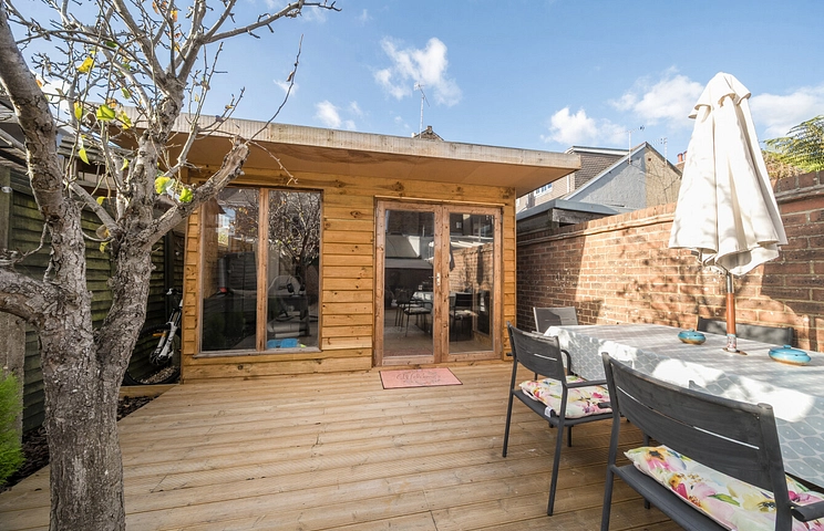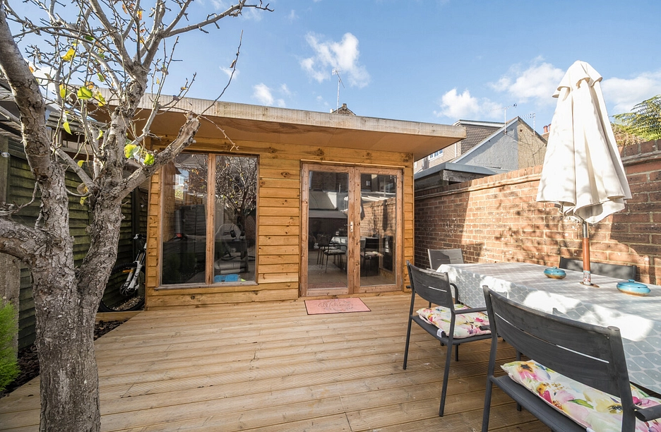 To the rear is a newly landscaped garden that attracts a great amount of sunlight. The owners have added a useful garden room that could be used for many purposes.