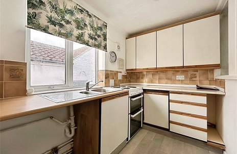 As you head into the living room, you will find there are dual aspect windows, allowing plenty of light in. There's space for a lounge set up, also providing an area for a dining table too. The fitted kitchen has ample storage for your kitchenware, along with space for an under counter fridge, washing machine and free standing oven. There is a pantry that also homes the boiler. Finally the bedroom has built in storage for convenience.