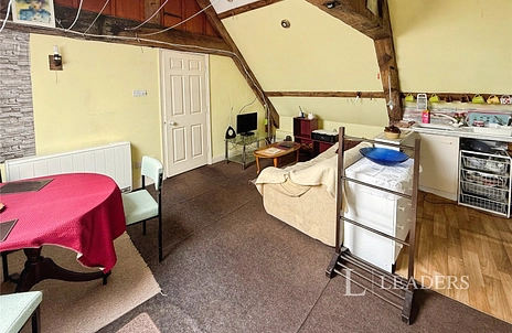 Top floor flat, access via stairs, comprising of entrance hall, open plan living space with kitchen, bedroom and bathroom.