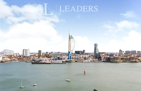 The accommodation includes an open-plan reception room with large windows, a fireplace and a door leading to a balcony, making the most of the views over Gosport. The modern kitchen benefits from natural light and enjoys similar outlooks. There is a double bedroom with built-in wardrobes, and a white bathroom suite with bath and shower.