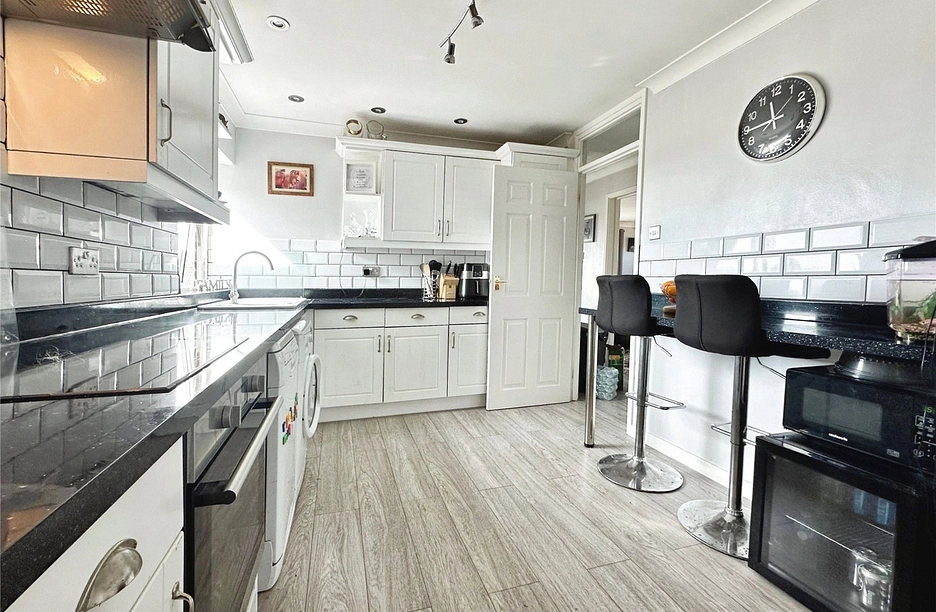 Welcome to this two-bedroom top-floor flat, in a desirable location full of country walks. The flat boasts a modern kitchen equipped with an integrated oven and induction hob. The spacious lounge area features an electric fireplace, creating a cozy ambiance with multpile windows creating a well lit living room.