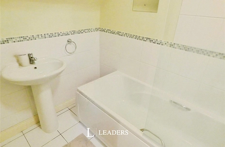 To the upper floor, the property features a generous double bedroom and a sleek white bathroom suite complete with a shower over the bath, offering both comfort and functionality.