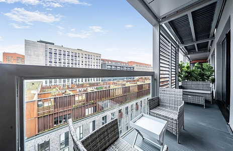 Discover contemporary city living at its finest in this beautifully presented, two-bedroom apartment. Situated on the fifth floor of a recently refurbished development in the heart of M15, this property seamlessly blends modern aesthetics with functional outdoor space.