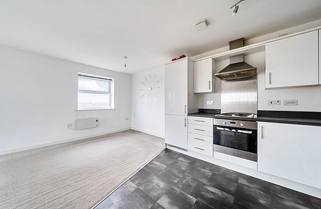 Situated on the third floor, the property benefits from a dual-aspect open plan living space, allowing for plenty of natural light throughout the day, along with a charming Juliet balcony that enhances the sense of space and openness.