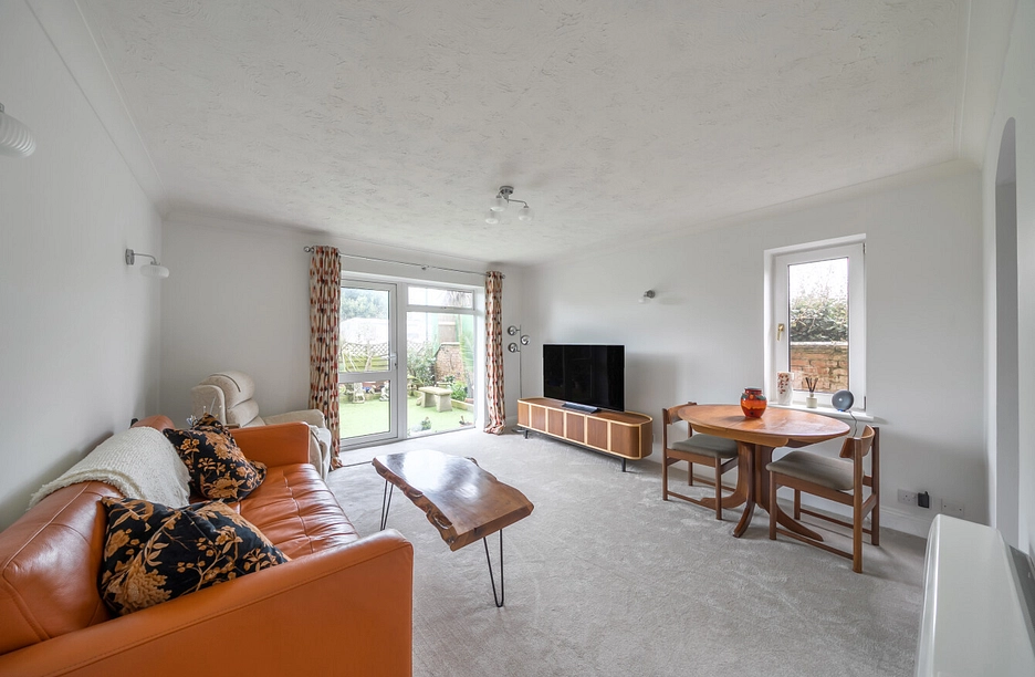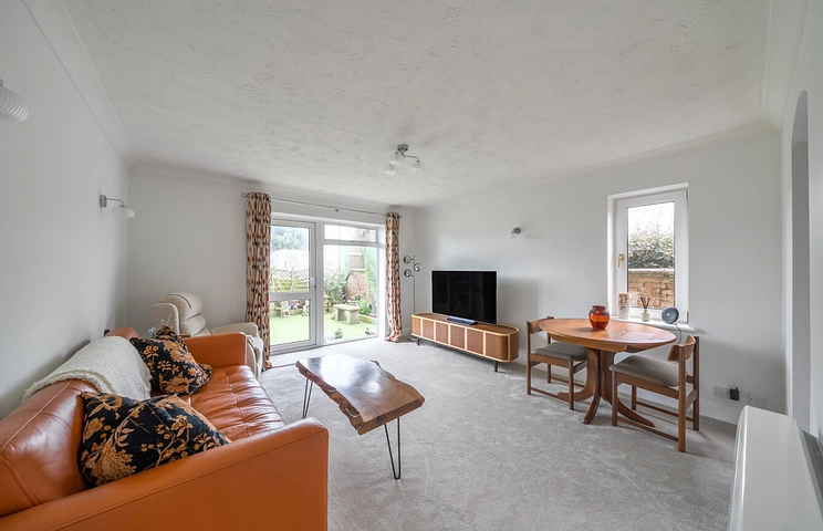 The apartment is well laid out with a large open planned double aspect living/dining room with doors opening to the garden. There is an archway leading into the newly fitted well equipped kitchen. There are two double bedrooms, the larger having the benefit of in-built wardrobes, a newly fitted shower room and hallway with three storage cupboards.