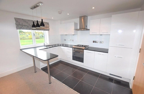 The modern fitted kitchen is seamlessly integrated and offers a range of sleek cabinetry and integrated appliances, combining practicality with contemporary styling.