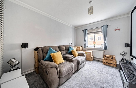The heart of the home is a spacious reception room with an open-plan kitchen, creating a sociable and versatile living space ideal for both relaxing and entertaining. Large windows allow plenty of natural light to flood the room, enhancing the bright and airy feel of the property. The kitchen is thoughtfully arranged with ample storage and workspace, making it both practical and stylish.