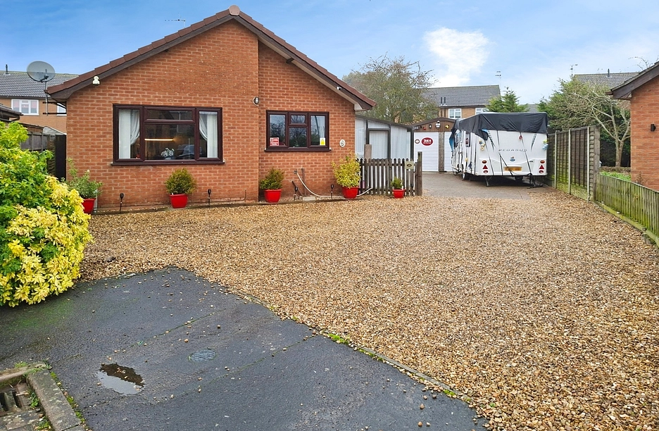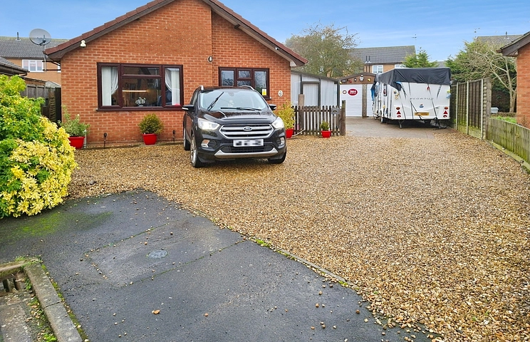 Externally, the bungalow benefits from a double garage, parking for several cars and space for a caravan, making it suitable for buyers requiring generous vehicular storage or hobby space.