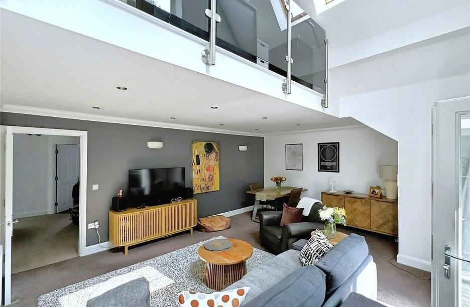A particularly distinctive feature is the mezzanine level overlooking the lounge, offering versatile additional space perfectly suited to a home office, reading area, occasional guest bedroom or hobby room. This flexibility makes the property especially appealing to those working from home or seeking adaptable living space.