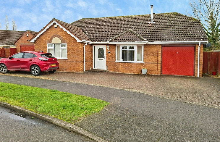 The master bedroom is a double with an en-suite, while a further double bedroom provides flexible accommodation for family, guests or home working. Outside, the bungalow benefits from a garden, driveway parking and a single garage.