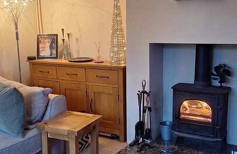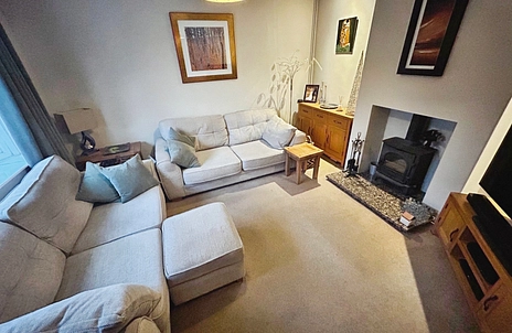 A well-proportioned reception room featuring a wood-burning stove set within the chimney recess, double-glazed window to the front elevation and radiator.