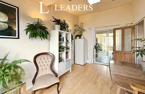 A natural light-filled kitchen provides a pleasing garden view, offering a serene and tranquil area for culinary pursuits. The property also features two reception rooms. The first is an open-plan space with a charming fireplace offering a cosy atmosphere, and the second provides direct access to the sunny garden, further enhancing the living experience.