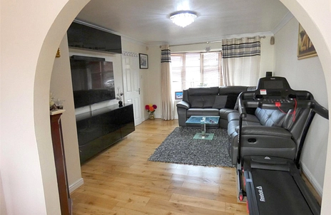 The property benefits from a welcoming entrance hallway leading through to a bright and generously sized reception room, providing ample space for both living and dining arrangements. The kitchen is fitted with a range of wall and base units, offering good storage and workspace, with access to the rear of the property.