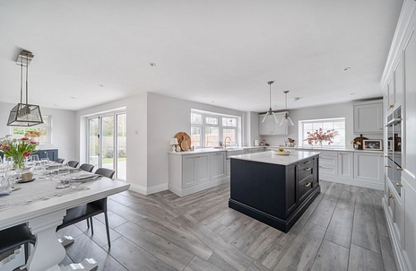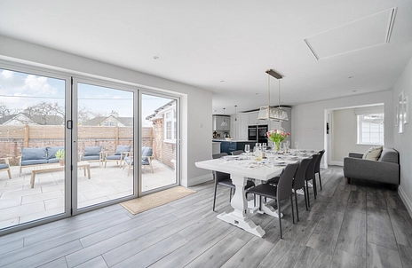 The current owner have extensively renovated throughout the house and the design is beautiful. The accommodation comprises of a fantastic open planned kitchen/dining room with Bi-folding doors opening to the patio area, the final touch is the coffee come cocktail area which is perfect for entertaining. A triple aspect spacious living room with fireplace and French doors opens to the garden. You will also find a downstairs shower room and utility room that leads into the double garage.