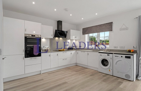 The welcoming interior is finished in crisp white tones with soft carpeting throughout, creating a calm and contemporary aesthetic. A charming bay-fronted lounge provides an inviting retreat, while the heart of the home lies to the rear: a stunning open-plan kitchen and dining space, flooded with natural light and opening directly onto the garden via sleek bi-fold doors — perfect for both everyday family life and entertaining.