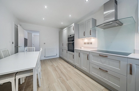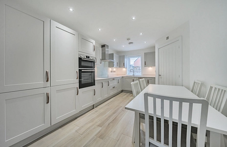 The ground floor features a contemporary kitchen with space for dining, creating a sociable and practical heart of the home. The kitchen provides generous worktop space and storage, with the added benefit of a separate utility room located just off the kitchen, offering additional convenience and keeping laundry neatly tucked away. From this level there is also access to the private rear garden, perfect for outdoor dining and relaxing.