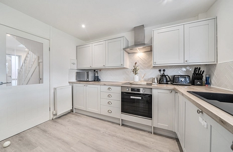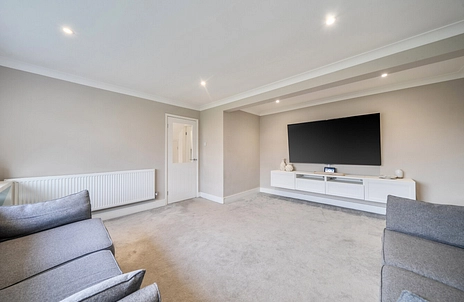 The property benefits from a large living room, providing a bright and welcoming space for relaxing or entertaining. To the rear, a modern fitted kitchen offers practical and stylish cooking space with convenient access to the rear conservatory, which enjoys views over the garden and provides an additional reception area perfect for dining, relaxing, or enjoying the open outlook beyond.