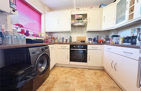 The property comprises an entrance hall, WC, and a fully fitted, spacious kitchen. The generously sized reception room offers ample space to accommodate both living and dining areas, if required, and features sliding doors leading out to the rear garden. The rear garden includes both patio and lawn areas and also provides access to the property’s garage.