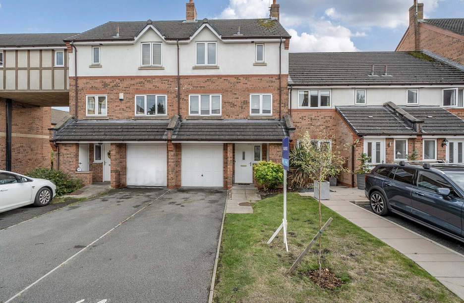 The townhouse features a well-maintained south facing garden, perfect for relaxing or hosting summer barbecues. Off-street parking and a garage provide convenient storage options for vehicles and outdoor equipment.