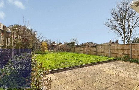 The spacious rear garden offers a generous lawn area, bordered by mature trees and shrubs for added privacy. A paved patio provides the perfect space for outdoor dining or entertaining, while a charming timber shed at the rear adds practical storage. An ideal setting for relaxation and family use.