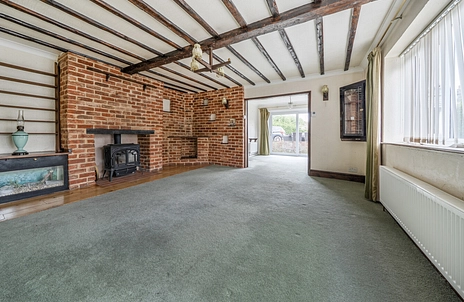 Externally, the property continues to excel in both space and privacy. A substantial gravel driveway provides ample parking for multiple vehicles and leads to a large brick-built garage. The expansive gardens are predominantly laid to lawn with a patio area, ideal for outdoor entertaining while enjoying the peaceful surroundings. Two outbuildings (in need of renovation) offer further potential, and the grounds extend down towards St Osyth Creek, enhancing the sense of seclusion and natural beauty. A striking willow tree sits centrally within the grounds, adding to the property’s charm and character.