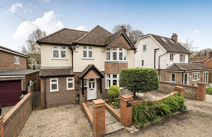 An impressive four-bedroom detached family home, ideally situated in a leafy and desirable location between Woking and Guildford.