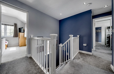 The landing leads to all four bedrooms and includes a built-in storage cupboard. The master bedroom sits at the rear of the home and benefits from built-in wardrobes and an en-suite shower room, comprising a walk-in shower, WC and wash hand basin. Two double-glazed windows to the side and rear bring in plenty of natural light.