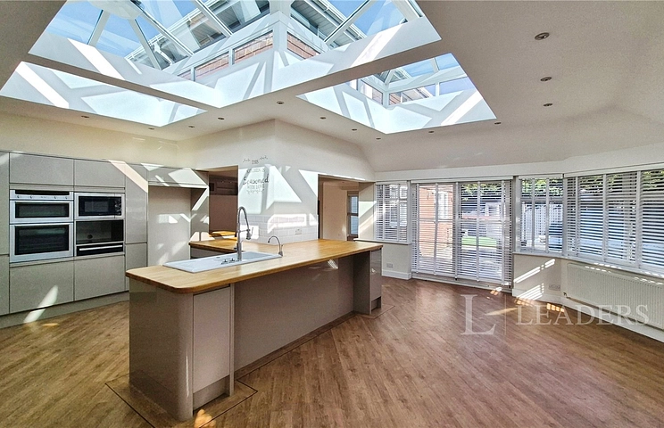This four-bedroom detached house is for sale in Stubbington, near Fareham, offering well-planned accommodation suited to families. The ground floor includes spacious reception rooms: a living room with large windows and a fireplace, a converted garage now used as a studio with built-in storage, and a dedicated study/office providing a defined workspace.