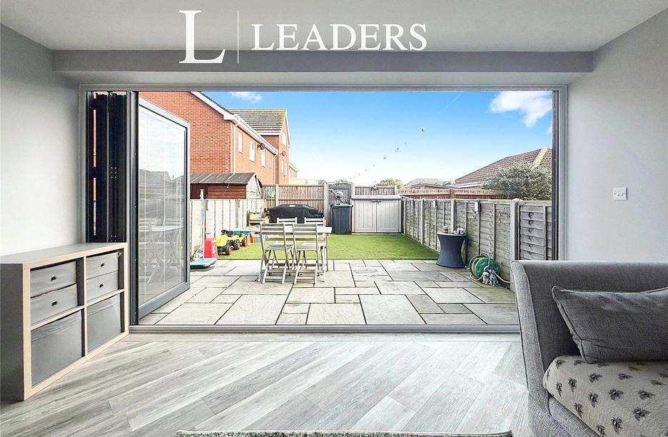 The ground floor features a welcoming hallway, cloakroom and an integral garage with power, water supply and drainage. Kardean flooring runs throughout the ground floor, with underfloor heating in the lounge area. A modern kitchen with wooden worktops and an island opens into an extended lounge/dining space, enhanced by a roof lantern and bi-fold doors leading out to the garden. The rear garden is designed for low maintenance, with a patio area, artificial lawn and rear access gate, as well as a driveway to the front providing additional parking.