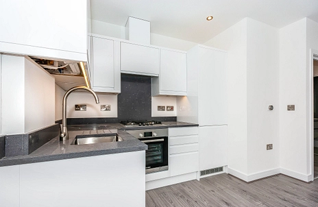 This smart and modern one bedroom flat presented to a high standard throughout is situated close to the centre of the historic town of Westerham.. The accommodation comprises of a hallway leading to the good sized open plan reception area with inset spotlights & the smart fitted kitchen with Bosch cooker & gas hob, extractor & fridge & freezer. Double bedroom & smart shower room. Utility cupboard with Bosch washer/dryer