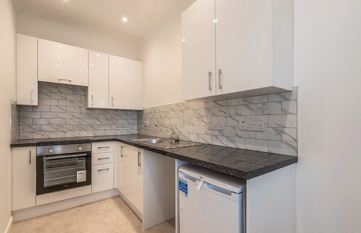 The property comprises; modern kitchen with white goods included, living room featuring high ceiling & bay window. White suite bathroom with shower over bath and a double bedroom.