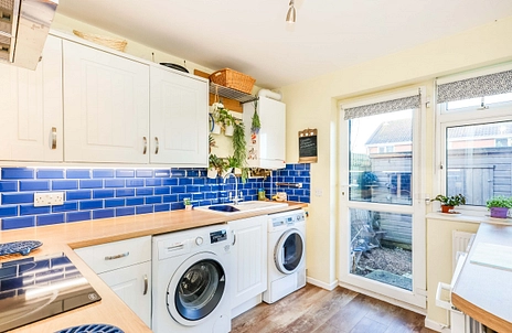 Beautifully presented one bedroom ground floor maisonette nestled in a quiet residential area in Clanfield. The property comprises entrance hallway, large living space with room for a dining area, generous double bedroom, and charming kitchen with under counter fridge, freezer, washing machine, tumble dryer, and electric fan oven and electric hob. The kitchen provides access to an easy to maintain, private rear garden with side access and wooden storage shed. Additional benefits include gas central heating, private entrance, plentiful storage throughout, allocated parking, and ample on-street parking.
