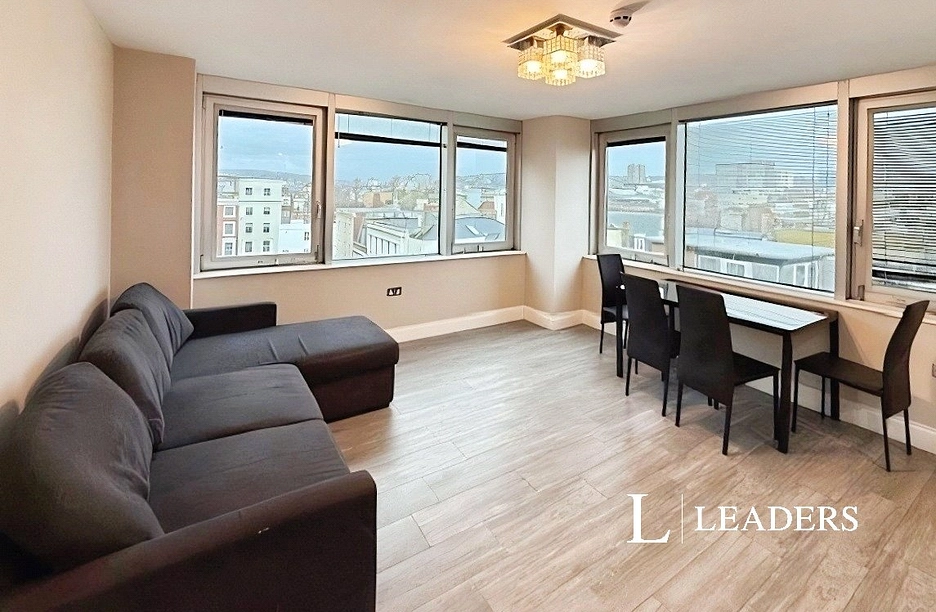 Open plan living area with dual aspect windows overlooking East Street. High gloss grey kitchen with all appliances including a washing machine and dishwasher. Two double bedrooms both with furniture. Luxury shower room. The apartment benefits from wooden flooring throughout, secure entry and lifts in the building.