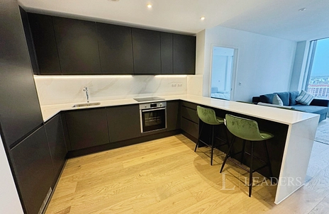 The property comprises two double bedrooms and two stylish bathrooms, perfectly suited to sharers or couples seeking a sophisticated urban lifestyle. The single kitchen is sleek and well-appointed, complementing the overall elegant finish of the flat.
