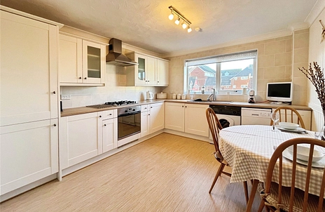 The apartment is well maintained throughout and comprises an entrance hall with a generous storage cupboard, a fitted kitchen with an integrated fridge/freezer, electric oven and gas hob, freestanding washing machine and dishwasher and a bright living room opening onto a private balcony. There are two well-proportioned bedrooms, with built-in wardrobes, along with a modern bathroom complete with a power shower over the bath.