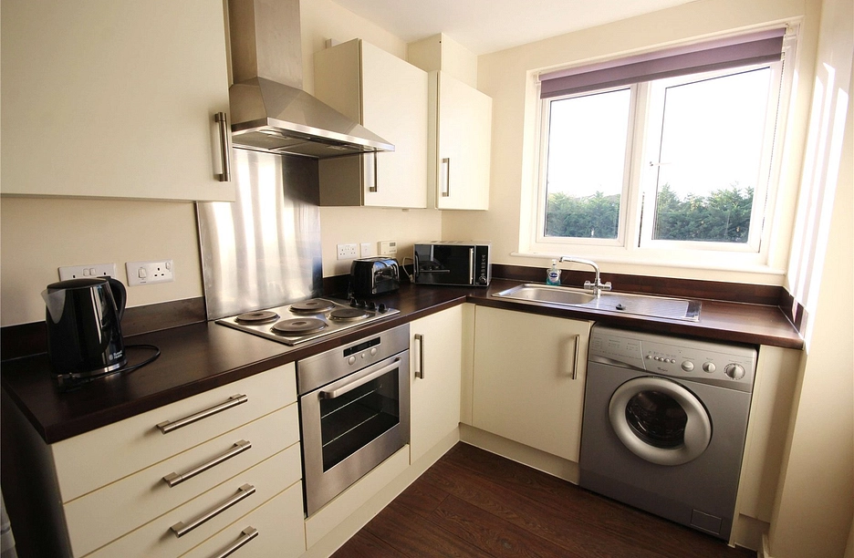 A well presented furnished modern first floor purpose built apartment with two double bedrooms and two bathrooms, situated within easy access to the M5 and GCHQ. The accommodation comprises entrance hall with telephone security intercom and doors to the living room, bathroom and both bedrooms. The living room has a large window to the side aspect, T.V. and telephone point, space for a dining table and is open to the kitchen. This is fitted with a range of matching wall and base level units with roll edge work surfaces over, one and a half bowl sink and drainer unit, four-ring electric hob with oven/grill under and extractor hood over, tiled splashbacks and washing machine and fridge freezer. Bedroom one is a good size with T.V./ telephone point and en-suite shower room. Bedroom two is also a double with a large window to the front aspect. The bathroom includes a panel bath with shower over, pedestal wash hand basin, low flush W.C and has tiled splashbacks and an extractor fan. To the front is allocated off road parking for one vehicle and a secure bike shed. The property is warmed by gas fired central heating and is double glazed throughout. Sorry no pets.EPC rating BCouncil Tax Band B