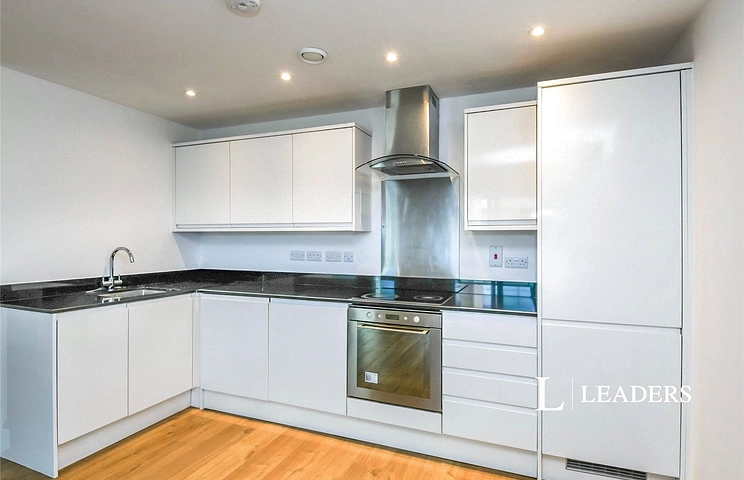 This unfurnished modern 2-bedroom apartment has spacious bright living accommodation, open plan to kitchen which has high gloss units and integral appliances.