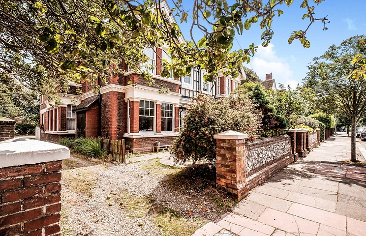 Two bedroom second floor flat on this popular tree lined road in West Worthing close to West Worthing train station within a small conversion of this period building. Lounge with sloped ceilings, modern separate kitchen with some appliances, long hallway to bathroom with shower, double bedroom, master bedroom with en suite shower room and fitted wardrobes. Double glazing.