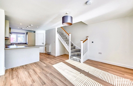 The property has been completed to an impeccably high standard and provides the perfect blank canvas for tenants to furnish to their taste. The ground floor provides a porch with access to a WC, a modern kitchen with integrated appliances, open plan to a light & airy living room and french doors that opens onto the garden laid mostly to lawn, with a good-sized patio area, ideal for the upcoming barbecue weather. To the first floor, tenants will find two good sized double bedrooms, ideal for a small family or hybrid/remote workers, as well as a gorgeous low-maintenance family bathroom with shower over bath.