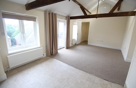 Stunning open plan living room/kitchen on the second floor with exposed beams. The accommodation comprises entrance hall , main open plan living area , two bedrooms and two bathrooms. The kitchen features built in appliances to include a fridge freezer, washer dryer, electric oven and gas hob with extractor fan over.