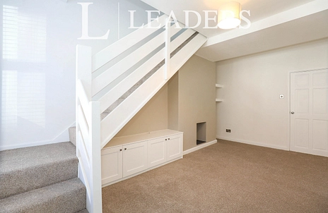 Entrance to large lounge / dining room with built in storage under the stairs, fresh decor and brand new fitted carpets