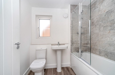 Upstairs, both bedrooms are generous doubles. The main bedroom benefits from an en-suite bathroom with heated towel rail, while the family bathroom features a contemporary rain shower and heated towel rail.