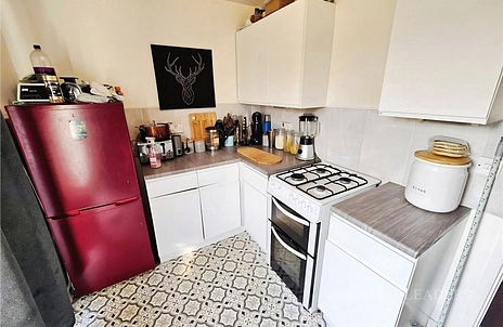 Having recently fitted cupboards, freestanding oven with gas hob, spaces for other appliances, patio doors out to garden.