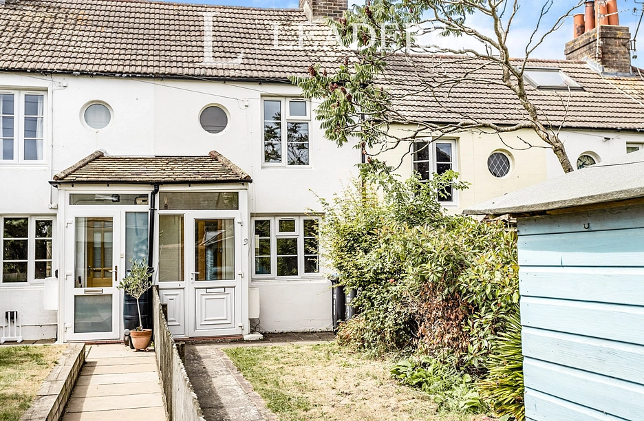 Upstairs, the main bedroom boasts a fitted wardrobe, while the second double bedroom offers built-in storage. To the rear, a private courtyard garden provides a perfect outdoor retreat.