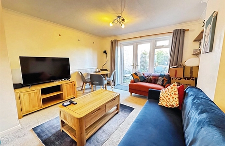 Continuing down the hallway, you are welcomed into a generous sized and bright living area. This spacious room is filled with plenty of natural light from the patio doors at the rear which lead directly out to the private back garden. The garden features a patio area ideal for outdoor seating, and a shed at the far end, along with rear access.