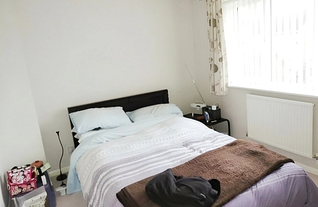 BEDROOM TWO: Double room, neutral decor, carpeted.
