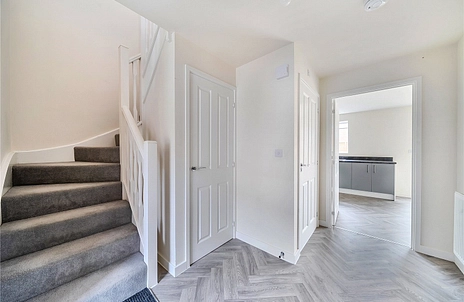 To the first floor is a master bedroom with en-suite and two further double bedrooms, the first floor is further accommodated with a family bathroom suite and a balcony overlooking the front aspect. To the front of the property is allocated parking for one car and to the rear is an enclosed garden which is mainly laid to lawn.