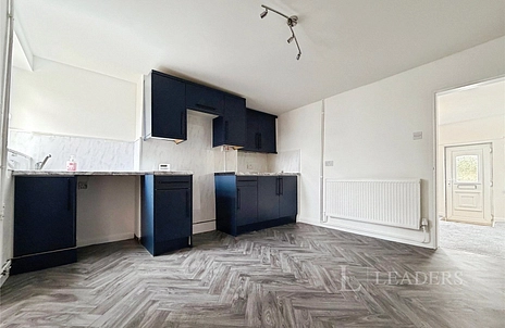 The property is entered through the front door directly into a generous living room, providing a comfortable main living space with plenty of room for furnishings. Moving through the property, you will find a well-sized kitchen that offers good storage and sufficient space to accommodate a dining table.
