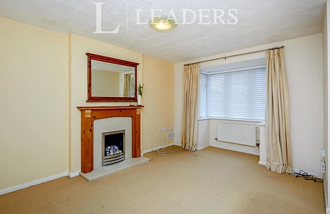 Box fronted window, gas stone effect fire set in surround, carpeted.